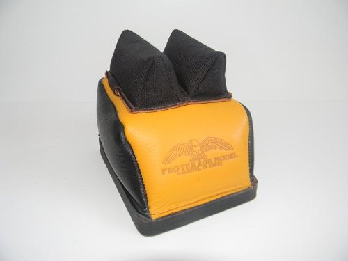 Mid-Ear models have ears slightly taller than bunny ears to provide additional support. This top of the line Deluxe B.B. Rear Bag, used by many short range bench rest shooters, has the Mid. Cordura 1/2" Double Stitch Btwn. ears for a better track. This bag has a integral doughnut bottom comprised of 3 layer hard bottom that measure 5" x 6 3/4". The side spears have the stiffer Bumble Bee Black and Gold leather to keep from stretching over time. This is an incredibly stable bag that will provide years of service. Bag Measurements: Mid. Cordura 1/2" T.S. Btwn. ears, bag is 3 3/4" - 4" tall to the bottom of the ears, 5" x 6 3/4" doughnut bottom, comes filled with sand and ready to use! MADE IN USA!